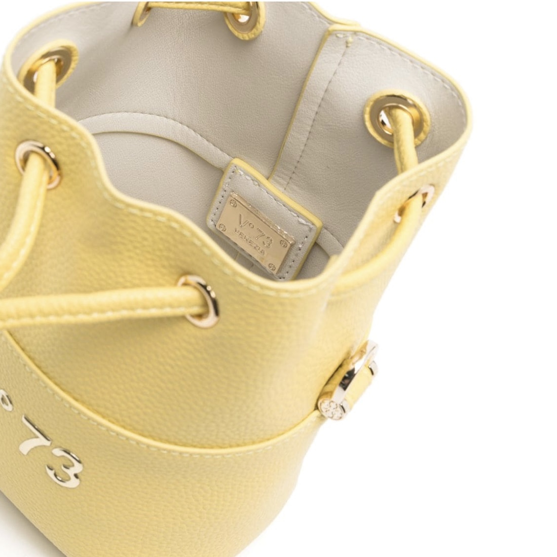 - gold-tone logo lettering to the front
